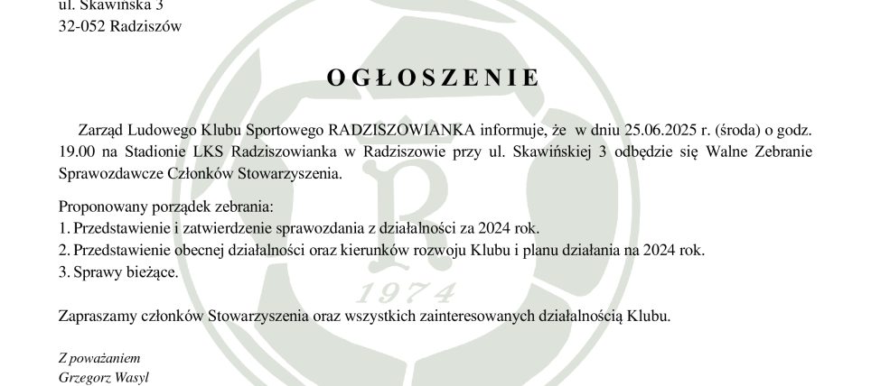 Czekamy na zgłoszenia do TURNIEJU DZIKICH DRUŻYN! Nie czekaj dłużej i już dziś zgłoś Swój TEAM Zgłoszenia przyjmujemy TYLKO do środy 18 czerwca, do końca dnia Warunek! W drużynie może zagrać maksymalnie 3 sadowników z naszego klubu „Radziszowianki”. Jeśli jesteś fanem piłki nożnej i chcesz zagrać w turnieju z innymi pasjonatami, to nie możesz