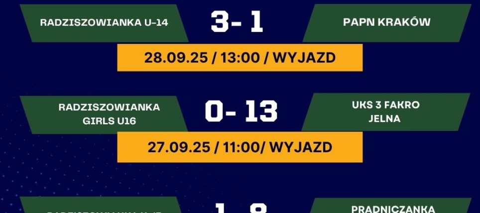 5 liga małopolska zachodnia KOLEJKA 9 GRAMY U SIEBIE Już jutro na własnym terenie zmierzymy się z Sokół KocmyrzówGDZIE? Stadion w Radziszowie (ul. Skawińska 3 )KIEDY? Sobota, 27.09.2025GODZINA? 15:00Z KIM ? SOKÓŁ KOCMYRZÓWPOGODA? 18ºC SłoneczniePo zwycięstwo!PS.Przypominamy również o konkursie fotograficznym więcej informacjihttps://www.facebook.com/photo?fbid=1342105047917429&set=a.473494161445193