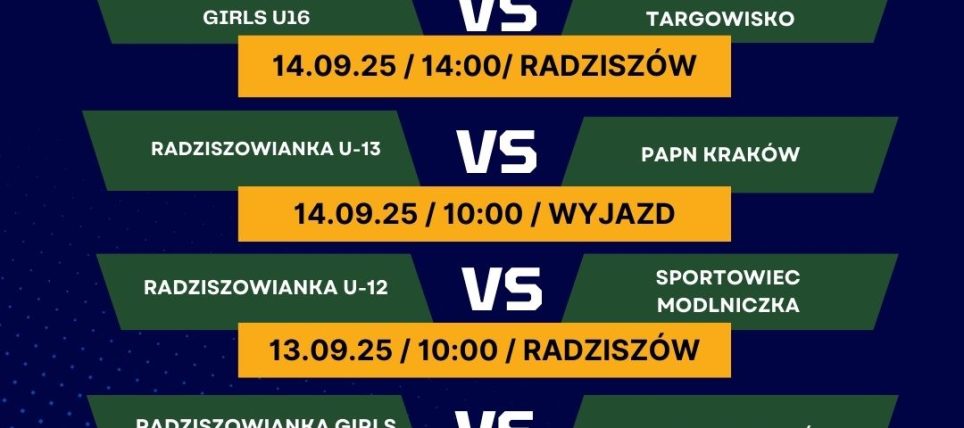 Podsumowanie Weekendu 06-07/09/2025 w Akademii Poniżej podsumowanie zmagań ligowych naszych drużyn młodzieżowych Przeciwnikom dziękujemy za sportową rywalizację i życzymy powodzenia w następnych meczach