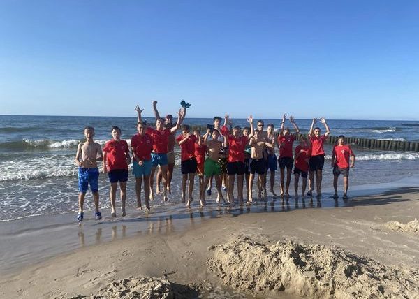 Meldunek – Sianożęty,Drugi dzień na szczęście przebiegł zgodnie z planem, bez kontuzji, bez nieszczęśliwych wypadków, zwycięstwo w sparingu i dwa jakościowe treningi.Pobudka 6:30, rozruch nad morzem, rywalizacja w wyścigach na piasku, przegrani sprawdzali temperaturę nad Bałtykiem zanurzając się po kolana.Na poranny trening udała się grupa starsza, bo młodsi grali sparing o godzinie 11:00.Sparing z