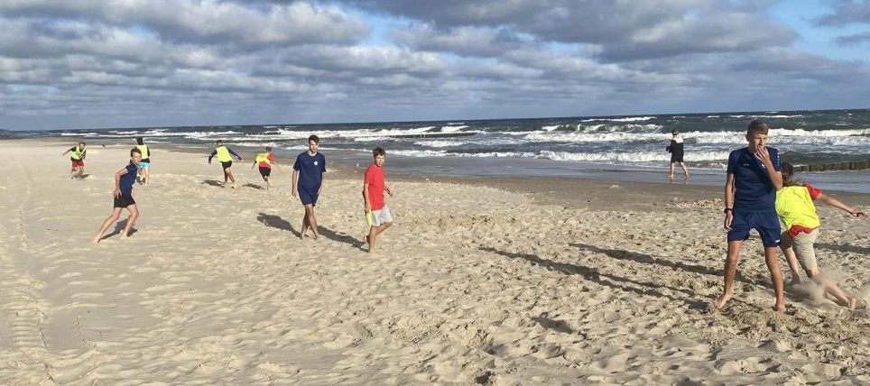 Halo Sianożęty, halo Radziszowianka! Dzień rozpoczęliśmy od legendarnego już rozruchu nad morzem, było nawet grane w piłkarskiego „palanta” a stawka nie byle jaka – przegrani musieli dyżurować cały dzień…na każdym treningu Oczywiście po śniadaniu udaliśmy się na pierwszy trening – w końcu piłka ale nie tylko, bo na pierwszych zajęciach mieliśmy możliwość po raz
